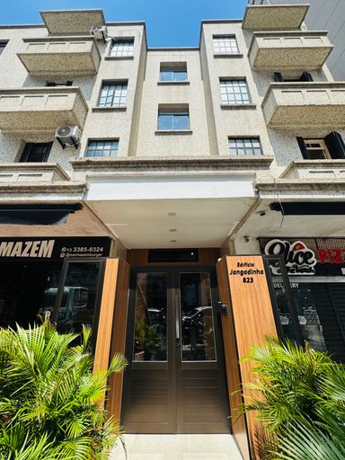 Kitnet na Rua Artur Porchat Assis, Boqueirão, Santos - Elevadores - Mobiliado - Portaria 24 horas - Garagem coletiva - Bicicletário - Cozinha com fogão e geladeira - Quarto com sofa cama - Vista livre - Banheiro com box Consulte nossas corretoras
