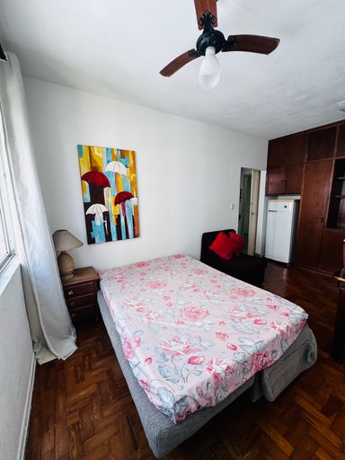 Kitnet, amplo, arejado e claro! Portaria 24horas, elevadores, uma quadra da praia, garagem e bicicletário são os diferenciais deste imóvel. Quarto amplo com armário embutido em madeira Banheiro com box de vidro e espaçoso Área de serviço Cozinha pequenina com fogão cooktop de 2 bocas
