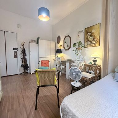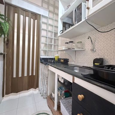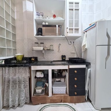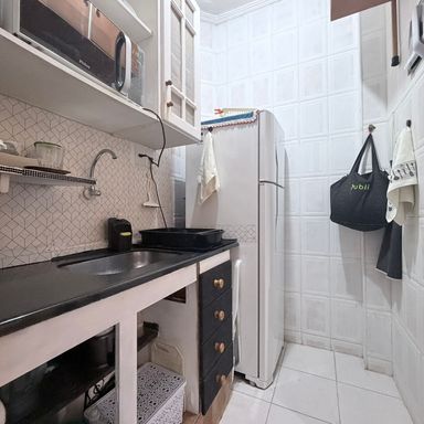Kitnet aconcehgante a 1 quadra da praia. 1 dormitório Cozinha Banheiro social Vaga de garagem coletiva Bicicletário Prédio com elevador